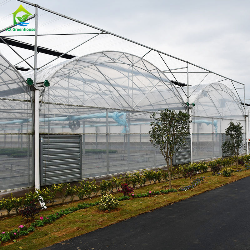Les serres arquées multi-travées ont une forte capacité de résistance au vent et à la neige, l'intérieur peut être complété par une couche d'isolation en arc. En été, l'utilisation d'un système de refroidissement par coussin et ventilateur, d'une ventilation latérale ou supérieure à moteur enroulable et d'un ombrage extérieur pour collaborer afin d'obtenir l'effet de refroidissement. Abordable, une large gamme est généralement utilisée, de 6 mètres, 7 mètres, 8 mètres, 9,6 mètres de portée, les matériaux de couverture supérieurs utilisent généralement un film plastique, entouré d'une membrane qui ne se limite pas au film, peut également être utilisé un panneau PC ou du verre et d'autres matériaux de couverture.