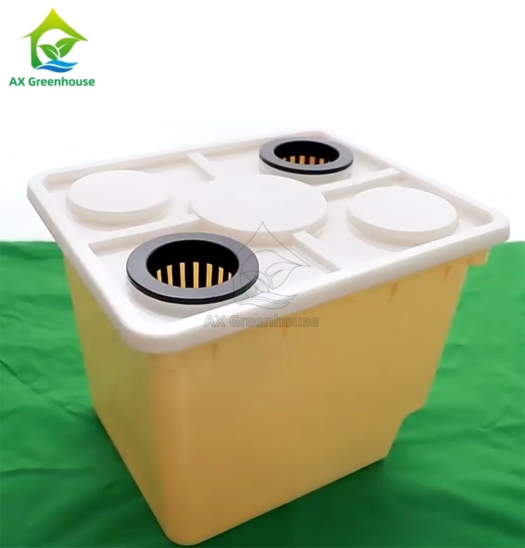 Système hydroponique Dutch Bucket est conçu pour la culture de plantes grimpantes - tomates, concombres, aubergines et poivrons. Les bacs hollandais, également connus sous le nom de bacs de plantation HL, sont disponibles en beige et noir, avec un couvercle supérieur blanc et une structure de conception unique, ce qui est plus propice à la croissance des racines des plantes. Le couvercle supérieur peut bloquer la lumière et empêcher la reproduction des algues. Le dispositif de drainage par siphon inférieur permet à l'excès de solution nutritive de retourner dans le réservoir de solution nutritive. Il y a un aquifère de 5 cm au fond, qui convient à la culture de tomates, de concombres, de poivrons, d'aubergines et d'autres fruits et légumes.